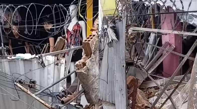 Parte da estrutura de três lojas desabou na tarde desta terça-feira (4), na Avenida Principal do Dirceu, na Zona Sudeste de Teresina. O trecho da via foi temporariamente interditado para garantir a segurança de pedestres e motoristas.