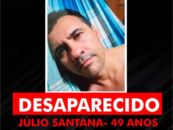 Júlio Santana de Sousa está desaparecido, e a família pede ajuda para encontrá-lo. As equipes da Polícia Militar e Polícia Civil já foram acionadas e estão a procura de Júlio Santana.