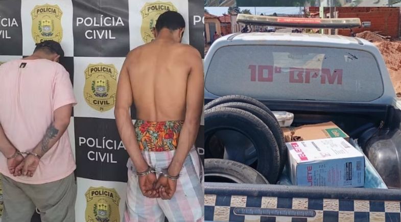 Dois homens foram presos pela Polícia Militar na manhã de quarta-feira (14) suspeitos de furtar um comércio na cidade de Ribeiro Gonçalves, no Sul do Piauí. Entre os presos está o filho do dono do estabelecimento.