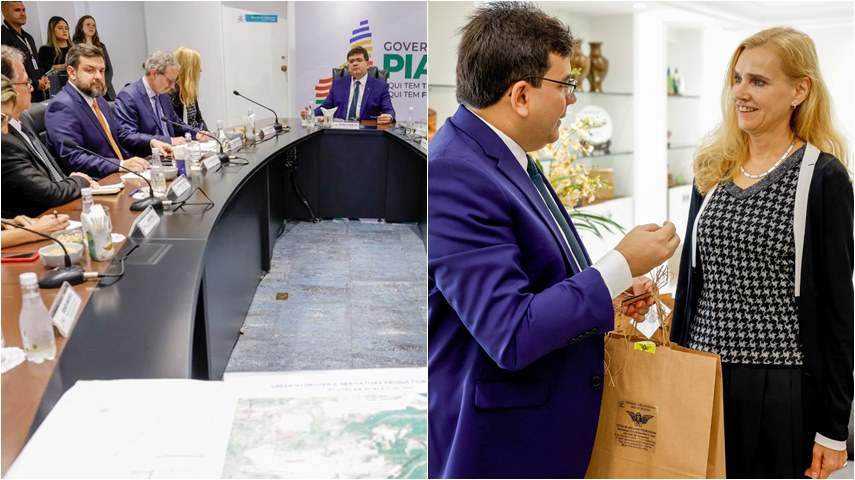 DESENVOLVIMENTO SUSTENTÁVEL: O governador destacou a relevância do encontro com a embaixadora da UE, ressaltando que o tema prioritário para o estado é a economia verde e as energias renováveis. Segundo ele, a cooperação entre o Brasil, o Piauí e a Europa, nessa agenda, é fundamental para impulsionar o desenvolvimento sustentável.