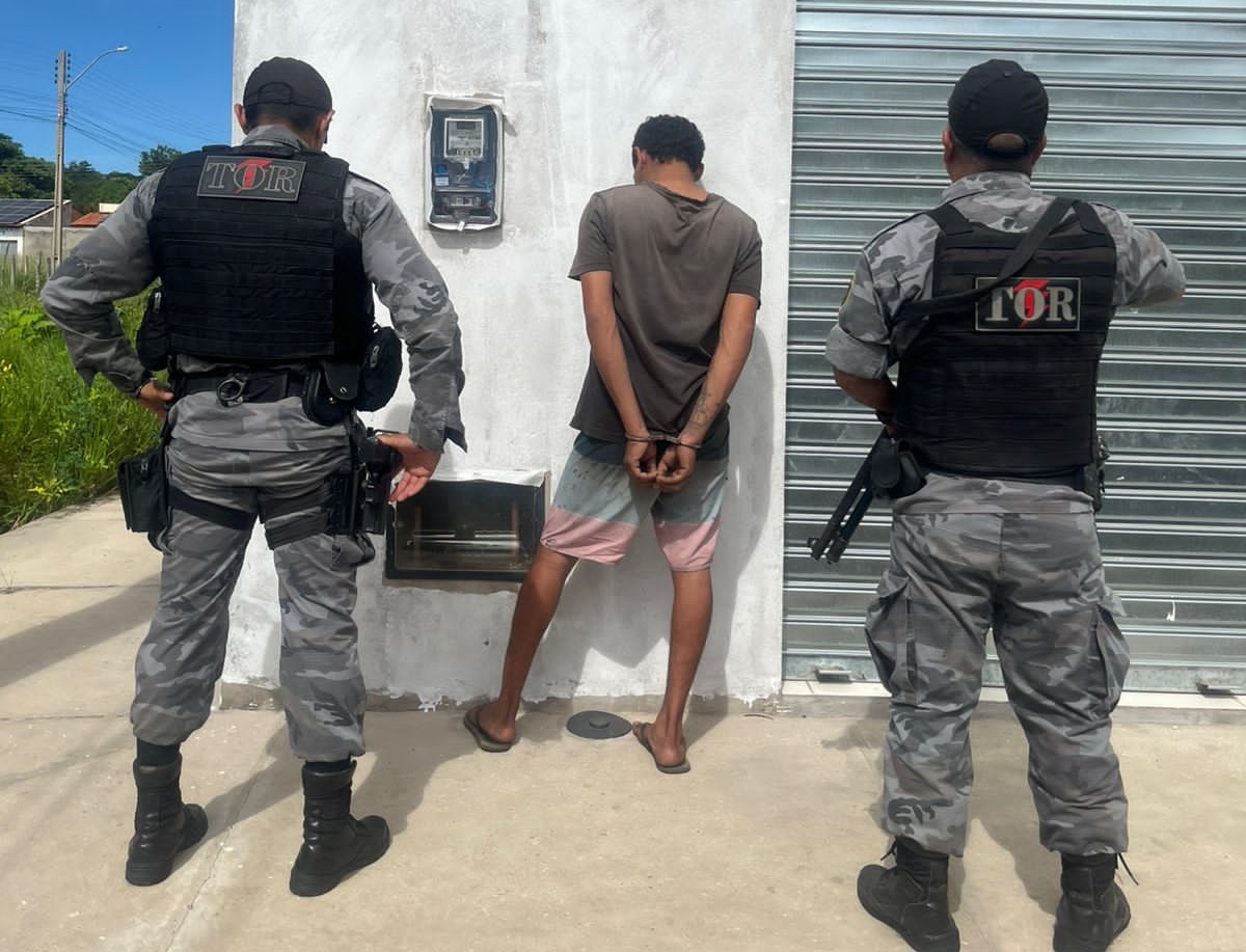 Após consultas aos sistemas processuais, os militares constataram que o homem, identificado como F. T. de S., possuía um mandado de prisão em aberto, estando foragido da Justiça.