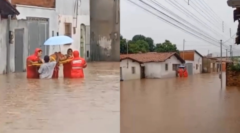 Uma idosa de 97 anos foi resgatada pelo Corpo de Bombeiros Militar do Estado do Piauí (CBMEPI), após ter a casa invadida pela água no Conjunto Pedro Simplício, durante as fortes chuvas que atingiram Floriano. O salvamento, registrado em vídeo e divulgado nas redes sociais, mostra a dimensão dos alagamentos provocados pelo temporal, que já causam transtornos, prejuízos e colocam moradores em situação de risco em diferentes áreas do município.