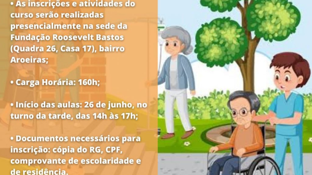 A Prefeitura de Teresina, por meio da Fundação Wall Ferraz abriu nesta quarta-feira (14), o processo de inscrição para o curso de “Cuidador de Idosos”, que será ministrado na sede da Fundação Roosevelt Bastos, no bairro Aroeiras, no turno da tarde, de 14h às 17h, com início das atividades no dia 26 de junho, com uma carga horária de 160h.