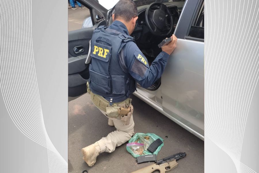 A Polícia Rodoviária Federal (PRF) encontrou um fuzil calibre 556, 281 munições e outras 13 munições de calibre 9 mm, além de R$ 1.784,00, durante uma abordagem a um carro, na BR-343, em Teresina. O motorista foi preso em flagrante em posse do arsenal.