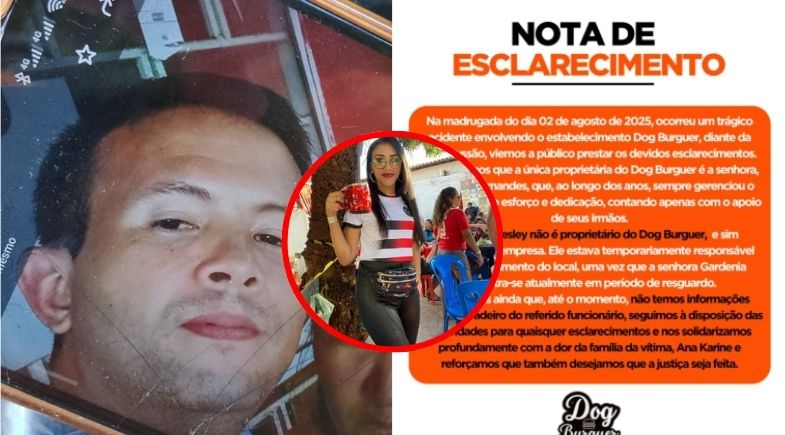 A hamburgueria Dog Burguer emitiu uma nota de esclarecimento a respeito do caso de Ana Karine, morta a facadas no estabelecimento na madrugada do último sábado (2). Segundo a gestão do local, Wesley, apontado como o principal suspeito do crime, não seria dono do estabelecimento, e sim um funcionário.