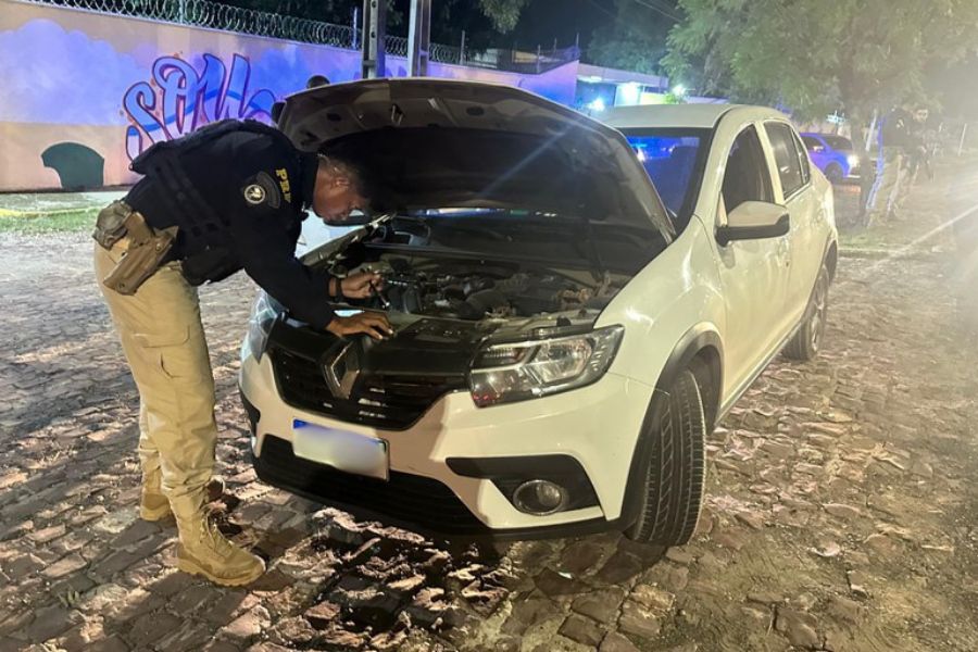 Após a ordem de parada, os policiais constataram que o veículo não estava no nome do condutor e que a placa não correspondia aos dados. Outras adulterações foram identificadas, e a consulta aos sistemas revelou que o veículo original tinha um registro de estelionato na 9ª Delegacia de Polícia de Carandiru (SP) de 12/07/2021.