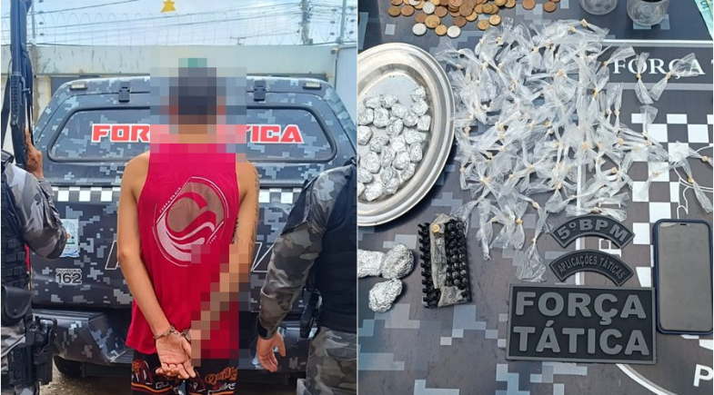 O 5º Batalhão da Polícia Militar, prendeu um homem, identificado pelas inciais J.V.S.O., por tráfico de drogas e porte ilegal de munição na terça-feira (24), no bairro Tabajaras, zona Sudeste de Teresina.