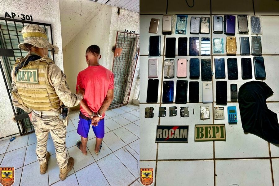 Um homem foi preso com 34 celulares com restrição de roubo e furto durante um patrulhamento da 1ª Companhia do Batalhão Especial de Policiamento do Interior (BEPI), no bairro Torquato Neto, zona Sul de Teresina, na tarde desta quarta-feira (21).