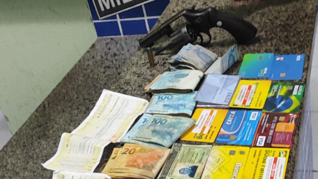 Por volta das 13h,no último sábado (07), a equipe estava fazendo ronda, quando avistou um carro preto conduzido pelo indivíduo. Ao ser abordado, as autoridades encontram, no veículo, um revólver calibre 38, com uma  munição intacta, alguns cartões em nome de terceiros e R$ 4.513,00 reais