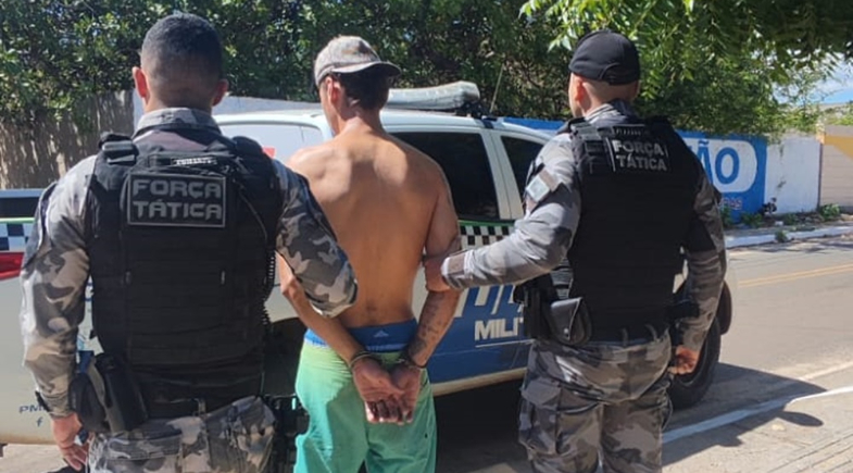 A Polícia Militar do Piauí, por meio da Força Tática da 2ª Companhia do 27º Batalhão, prendeu na manhã deste sábado (12) um homem identificado como C. C. de S., alvo de um mandado de prisão pelos crimes de roubo, ameaça e suspeita de envolvimento em homicídio.