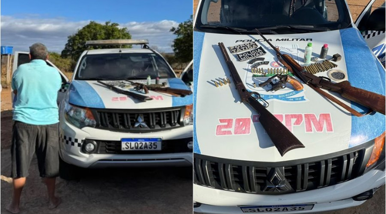 Durante a abordagem, foram apreendidas diversas armas e munições. Entre os materiais encontrados estavam um rifle calibre .44 com quatro munições, um revólver calibre .38 com 13 munições intactas e uma deflagrada, uma espingarda calibre .36 com 18 cartuchos e uma foice.