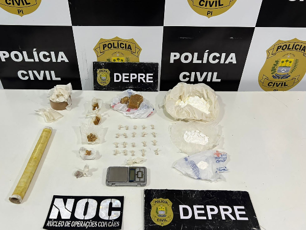 Foram localizados também uma substância em pó análoga à cocaína, balança de precisão usada para fracionar a droga em pequenas quantidades e diversas embalagens plásticas.