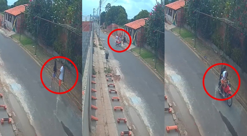 Eram 15h07, quando um casal aparece caminhando em uma rua. Ao flagrar o idoso na motocicleta, a dupla então o aborda, toma o veículo e foge. A ação foi rápida, conforme as imagens.