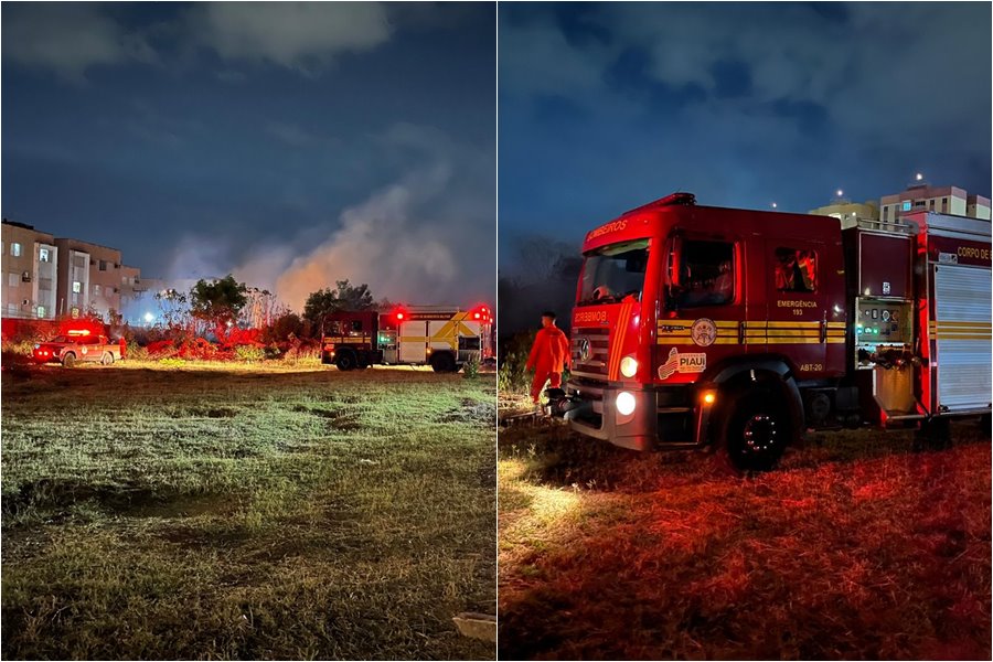 Equipes do Corpo de Bombeiros foram acionadas na noite de sexta-feira (04) para combater um incêndio em vegetação no bairro Cristo Rei, na zona Sul de Teresina. Segundo a corporação, as chamas estavam concentradas em uma área de difícil acesso, mas ameaçavam condomínios próximos.