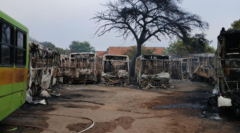 Além dos ônibus escolares, alguns caminhões e parte da estrutura da madeireira também foram atingidos. Livros e materiais escolares que estavam armazenados nos veículos foram consumidos pelo fogo.