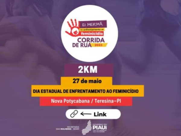 As inscrições para a corrida de rua "Ei mermã, de enfrentamento ao feminicídio" que acontece dia 27 de maio já estão abertas. O evento que é promovido pelo estado do Piauí juntamente com a secretaria de estado das Mulheres, faz parte da programação do Dia Estadual de Combate ao Feminicídio.