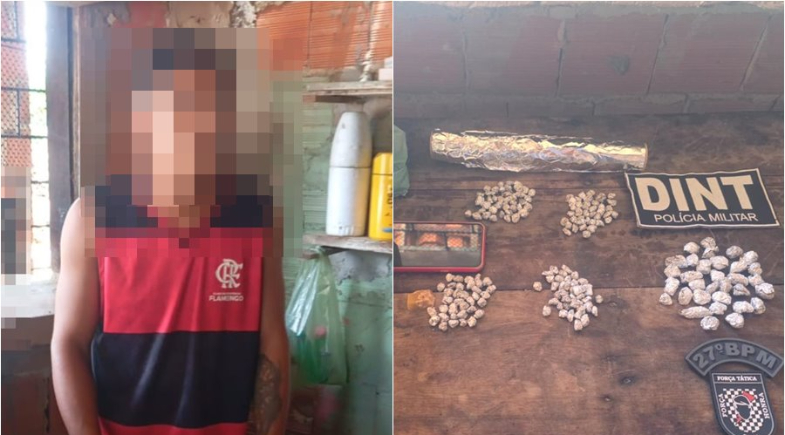 Na ação policial, foram apreendidas 157 porções de substância análoga ao crack, 32 trouxinhas de substância análoga à maconha, a quantia de R$ 282 em dinheiro trocado, um rolo de papel alumínio e um aparelho celular. O material ilícito foi localizado próximo ao suspeito e à criança.