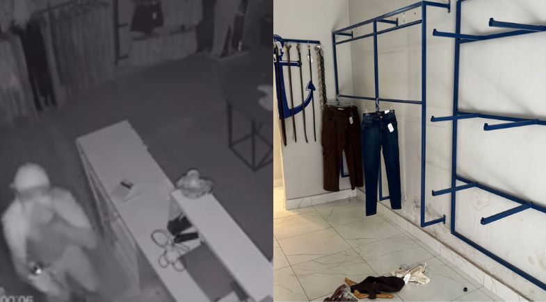 O proprietário relatou que, na manhã desta segunda-feira (5), uma funcionária da loja foi abrir o estabelecimento e se deparou com a ausência de roupas nas araras e com a câmera pichada. Ela acionou o dono por volta das 8h40. Segundo ele, foram levadas todas as peças jeans, roupas de uma arara completa, perfumes e um notebook.