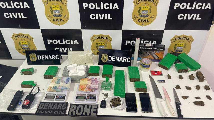 “Foi feito um acompanhamento tático e uma abordagem no momento que essa pessoa da motocicleta entregava essa droga para uma pessoa na Avenida Maranhão, realizar a venda. Aí foi feita a abordagem, constatou que na sacola contia toda aquela droga que está naquele canto lá da mesa. E aí a gente voltou, cumpriu as buscas e encontrou todo esse restante da droga, confirmando as investigações anteriores”, explicou a autoridade.