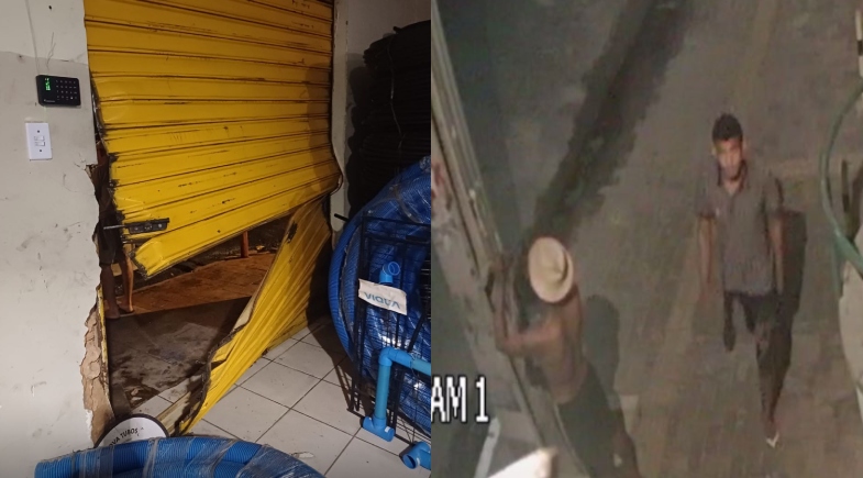Nesta semana, uma loja de roupas femininas foi arrombada e furtada, mesmo estando a poucos metros de uma delegacia. Câmeras de segurança registraram o momento em que dois homens quebram o vidro do estabelecimento para levar diversos objetos.