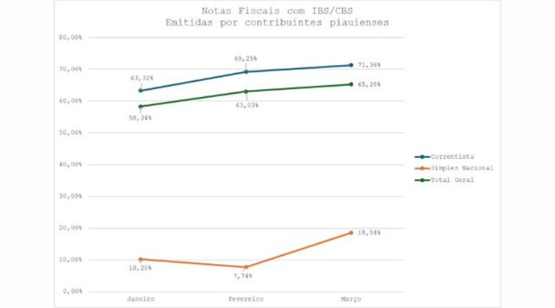 No Piauí essa mudança já é uma realidade positiva, uma vez que o preenchimento dos campos IBS e CBS nas notas fiscais eletrônicas vem apresentando crescimento consistente ao longo do primeiro trimestre do ano desse ano. “Em janeiro, essa adesão foi de 58,34%, avançando para 63,03% em fevereiro e alcançando 65,28% em março. O movimento indica uma evolução gradual na adaptação dos contribuintes às novas exigências fiscais, refletindo maior atenção e adequação aos procedimentos tributários”, analisa o coordenador do Grupo de Trabalho (GT) da Reforma Tributária no Piauí, Bruno Carvalho, que é auditor fiscal da Secretaria da Fazenda do Estado do Piauí (Sefaz).