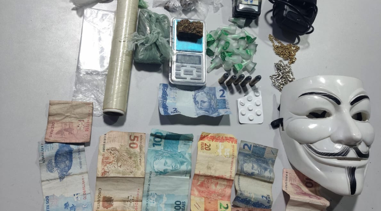 Durante buscas no quintal, os policiais localizaram mais drogas e diversas munições de arma de fogo. Diante da situação, o homem, identificado pelas iniciais H.R.S.B., foi conduzido à Central de Flagrantes, onde foi autuado.