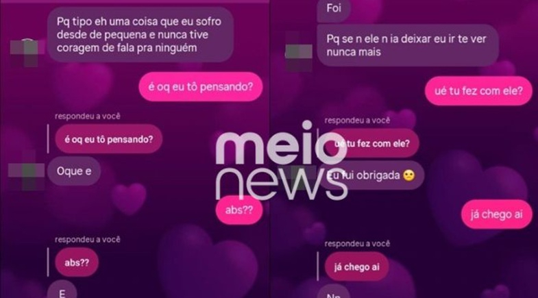 O MeioNews teve acesso exclusivo aos prints de mensagens trocadas entre os dois adoelscentes, em que a vítima relata os abusos.