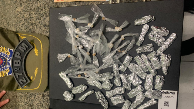 Na tarde de ontem, o 27º BPM recebeu uma informação relatando que no endereço ocorria a comercialização de entorpecentes. Em seguida, a guarnição se dirigiu até o local e flagrou o menor tentando fugir por um terreno, mas ele foi capturado e submetido a uma abordagem policial.
