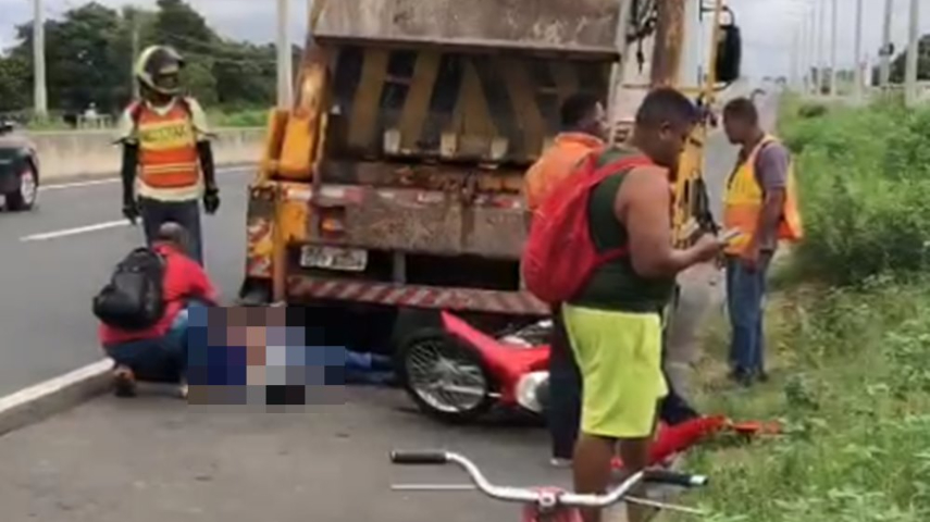 Um motociclista ficou ferido durante acidente envolvendo um caminhão que transportava uma caçamba para depósito de entulho, na manhã desta terça-feira (5), na rodovia BR-316, trecho urbano de Teresina.