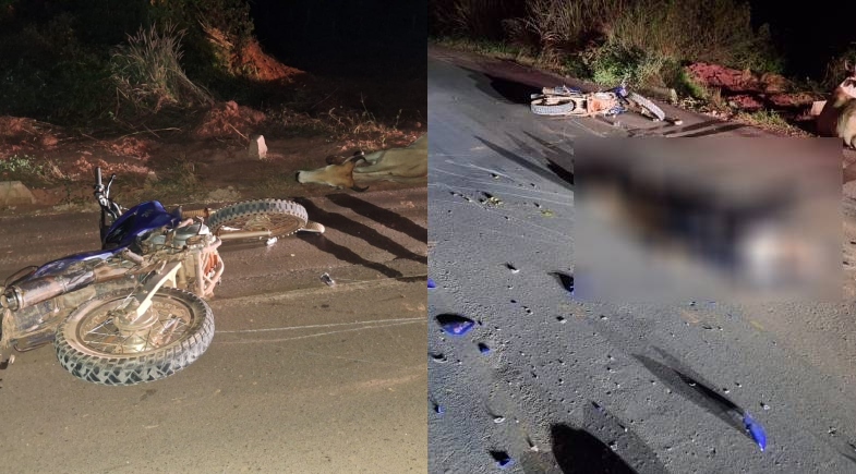 Um motociclista morreu após colidir violentamente contra uma vaca na BR-135, entre as cidades de Gilbués e Monte Alegre do Piauí. O corpo da vítima foi encontrado na madrugada deste sábado (25) quando as equipes do 7º Batalhão de Polícia Militar faziam rondas e foram acionadas por um morador.