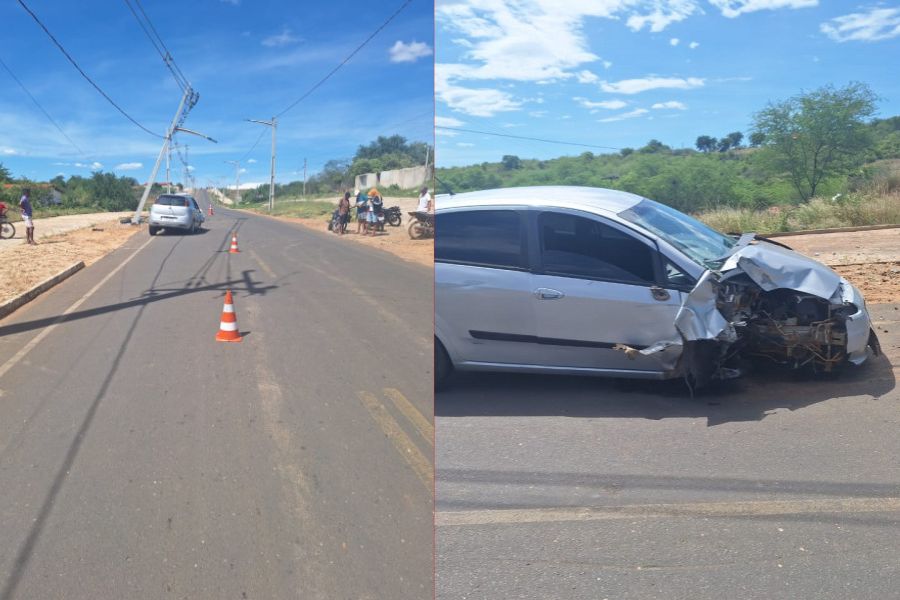 Motorista colide carro em poste e é preso por embriaguez no interior do Piauí