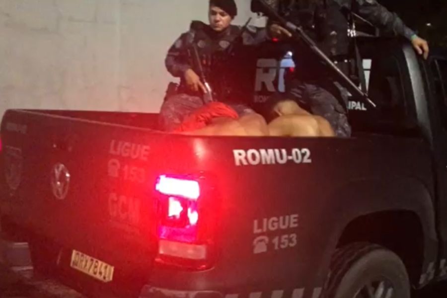 Segundo a equipe, os suspeitos abandonaram o carro e tentaram trocar de roupa, mas foram capturados.