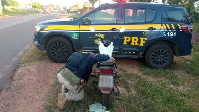Ao ser questionada sobre o documento do veículo, a condutora informou aos policiais que não estava portando, mas que poderia pegá-lo em casa. Dando continuidade aos procedimentos de identificação veicular, a equipe constatou que a motocicleta apresentava alguns sinais de adulteração nos elementos identificadores.