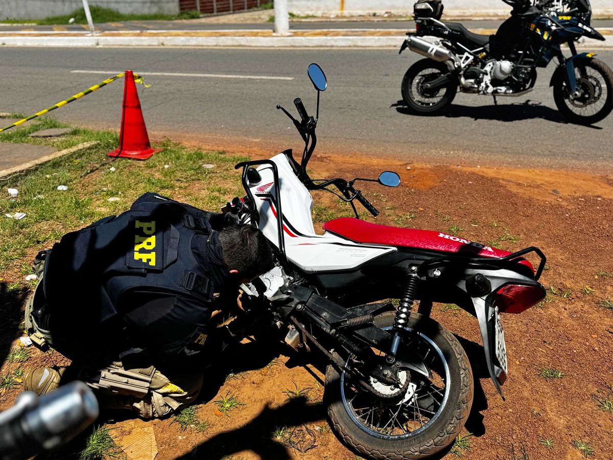 A equipe PRF realizava um comando de fiscalização estática quando abordou uma motocicleta Honda/POP 110i, conduzida por uma mulher sem capacete. Ao verificar os elementos identificadores do veículo, os policiais constataram que se tratava de uma motocicleta roubada na cidade de Timon, no Maranhão, em 2022.