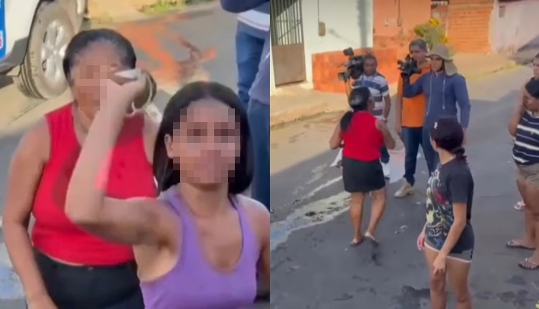 Mulheres discutem com imprensa e uma delas joga chinelo em repórter | Foto: Reprodução/Ivan Lima