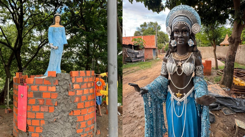 MUDANÇAS: Dessa vez, no lugar da orixá que está representada por uma figura feminina de pele branca e o cabelo liso, ficará uma Iemanjá de pele negra e adereços que remetem ao mar, como conchas e pérolas. Os religiosos contaram com apoio de um empresário para subsidiar os custos da estátua.