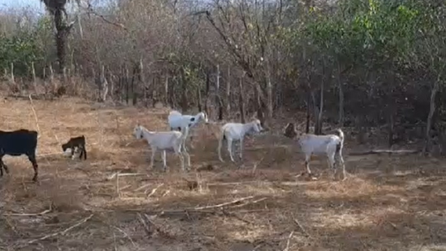 Estamos aqui com o Damião, meu vizinho aqui da Fazenda Tamburil. Ele é criador de caprino também a 800 metros da minha propriedade. No dia 2 de julho de 2023, ele tinha um rebanho de 63 animais e agora ele tem apenas 30 animais. O restante foi devorado pelas onças”, narrou o criador.