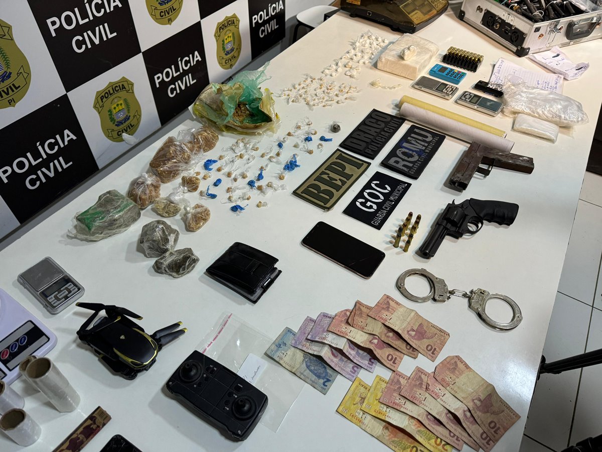 Além do drone, foram apreendidos armas de fogo, drogas, dinheiro, maquinetas de cartão, além de outros materiais. A operação ocorreu nos bairros, Nova Brasília, Alto Alegre, Morro da Esperança e Primavera. O objetivo da ação foi combater a atuação de organizações criminosas.