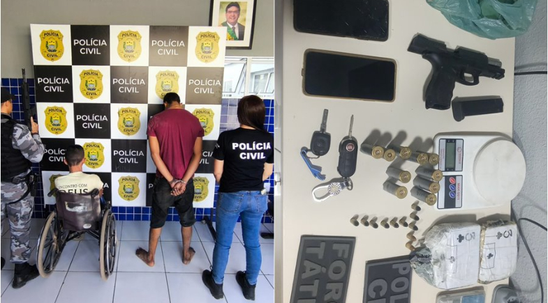 Durante o cumprimento do mandado judicial na residência de um indivíduo identificado pelas iniciais M. F. de O., foram localizados aproximadamente 400 gramas de substância análoga à cocaína, uma pistola calibre 9mm, 11 munições do mesmo calibre, além de munições calibre 12 deflagradas. Também foram apreendidas duas balanças de precisão, três aparelhos celulares, dois carros (um Gol cinza e um Fiat Palio vermelho), além de climatizadores, aparelhos de ar-condicionado e caixas de som, todos sem comprovação de origem.