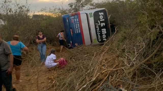 Um acidente envolvendo um ônibus da empresa Sol e Mar Turismo que transportava romeiros de Teresina com destino a Juazeiro do Norte, no Ceará, deixou uma adolescente morta e vários feridos nesta quarta-feira (27). O veículo estava passando pela rodovia estadual em Pernambuco, nas proximidades de Araripina, quando perdeu o controle, saiu da pista e tombou. Conforme a polícia pernambucana, várias pessoas ficaram presas às ferragens.