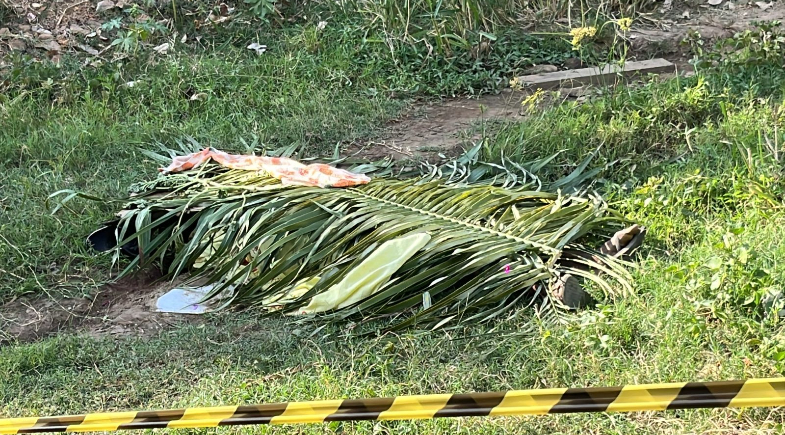 Imagem mostra corpo coberto com palhas de coqueiro em Teresina | Foto: Reprodução/TV Meio Norte