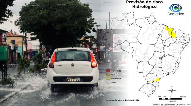 O Centro Nacional de Monitoramento e Alertas de Desastres Naturais (Cemaden/MCTI) divulgou a previsão de riscos geo-hidrológicos para o Brasil, incluindo o Piauí, para esta segunda-feira (30).