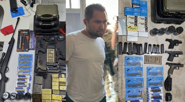 No local, foram encontradas três pistolas, uma Glock calibre .380, uma Taurus calibre .22 e uma Taurus G2C calibre 9mm,além de carregadores, coldres, alongadores, uma carabina de pressão, kits de limpeza, maletas e outros acessórios. Também estavam armazenadas 1.519 munições calibre .22, 155 munições calibre .380, 215 munições calibre 9mm, 900 espoletas e uma máquina de recarga de munições.