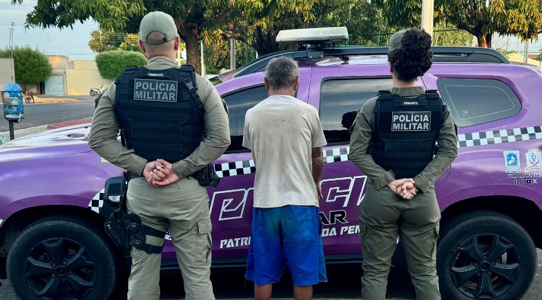 Ao chegar ao endereço, no bairro Portelinha, os policiais encontraram o suspeito sentado em frente à casa da vítima. A idosa relatou não suportar mais as constantes agressões verbais e episódios de violência psicológica.