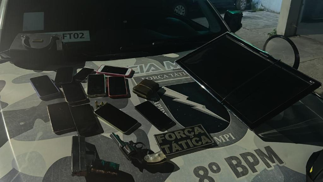 Além das armas, 11 celulares de diversas marcas foram recuperados, um monitor de TV, 6 bolsas com pertences pessoais de vítimas e o próprio veículo. O material apreendido e os presos foram e encaminhados para a Central de Flagrantes para os procedimentos cabíveis.