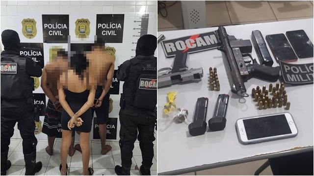 A Polícia Militar do Piauí, através do 3º Batalhão e da Rocam, realizou na terça-feira (7), a prisão de três indivíduos, sendo dois homens e uma mulher, após uma perseguição policial na BR-343, no bairro Cajueiro 2, na cidade de Floriano, no Sul do Piauí. Com o trio foi apreendido uma submetralhadora e uma pistola e um revólver, sendo uma roubada de um agente penitenciário do Ceará.