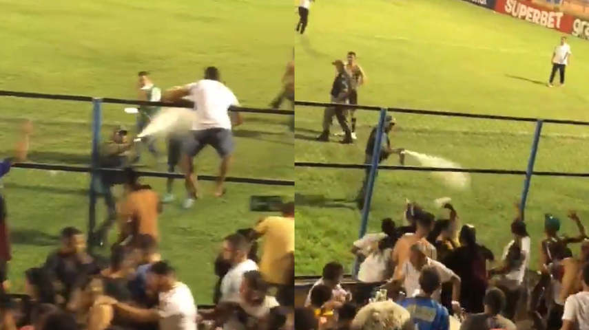 Um vídeo feito por um torcedor mostra o momento em que um policial militar usa spray de pimenta para acalmar os fãs do Altos. O incidente ocorreu após o final da partida, que terminou com a vitória de 2x1 para o Jacaré. O policial buscou conter a agitação da plateia.