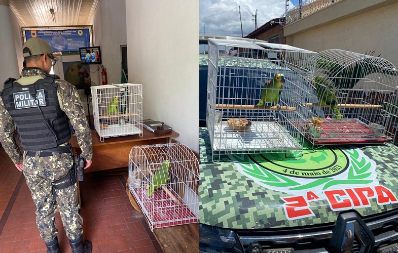 A Polícia Militar do Piauí, através do Comando de Policiamento Ambiental, apreendeu neste sábado (14) dois papagaios que estavam sendo mantidos de forma ilegal em uma residência no município de Parnaíba, litoral do estado.