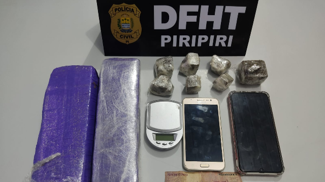 Na residência da namorada dosuspeitoforam encontrados enterrados dois tijolos de maconha e diversas porções menores da substância. Já na residência do acusado foi encontrado uma balança de precisão, utilizada para pesar entorpecentes para a comercialização em menores quantidades.