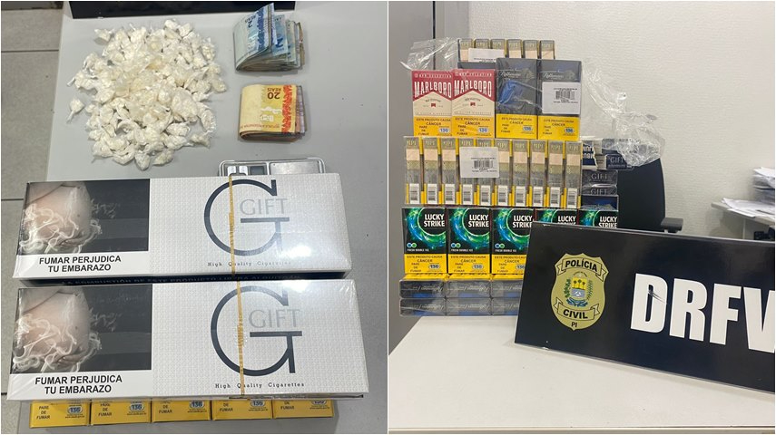 O QUE FOI APREENDIDO: A ação foi feita por meio do Departamento de Roubo e Furto de Veículos (DRFV). Os policiais encontraram vasta quantidade de entorpecentes, uma balança de precisão, dinheiro trocado, bem como caixas de cigarros durante o cumprimento do mandado.